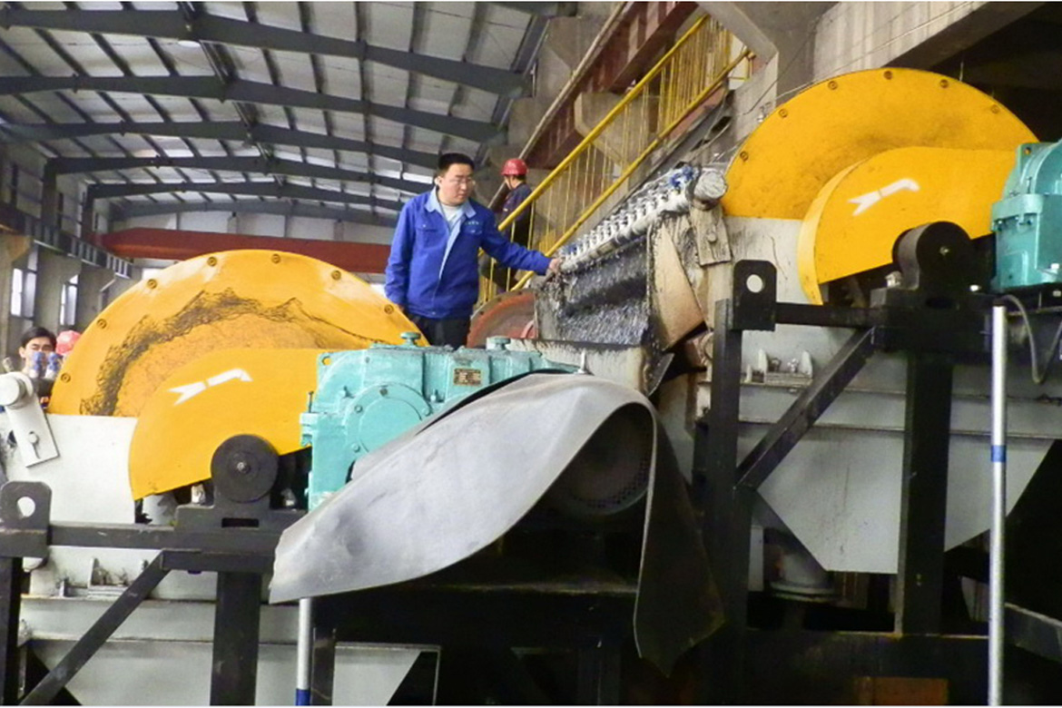 ◆磁系包角達160°,大于普通順流型磁選機的127°,選別區加長,磁翻滾次數增加從而使精礦品位提高。 ◆具有磁選機的基本特征,可以實現物料的大處理量,大筒徑系列可達200 t/h以上,遠遠大于脫泥槽及淘洗磁選機的處理量。 ◆脫泥濃縮精選機處理礦物濃度在30%左右,處理噸礦耗水量為脫泥槽和淘洗磁選機的1/2-1/3,大大節約選廠的用水量。 ◆相比脫泥槽及淘洗磁選機體積緊湊、安裝方便。